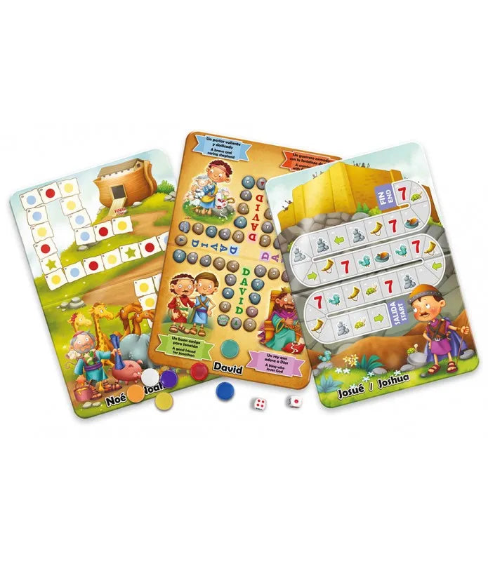 Multi-diversión en grande, que dará a los niños un agradable entretenimiento y aprendizaje. Los pequeños se divertirán a lo grande con esta caja de juegos de mesa con personajes bíblicos.