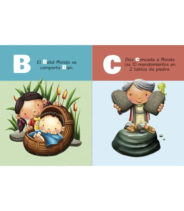 Una mirada al abecedario para recordar algunos relatos de la Biblia. Un bello primer acercamiento al conocimiento del abecedario con relatos de la biblia.