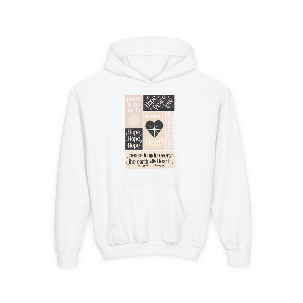 La sudadera con capucha de mezcla juvenil está hecha de vellón preencogido ultra suave que se siente maravillosa contra la piel. La prenda es 50% algodón 50% poliéster con acumulación de pelusa reducida. La parte delantera tiene un bolsillo canguro lo suficientemente grande para ambas manos. El cuello está reforzado con cinta de sarga.